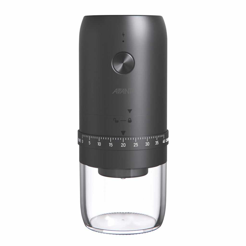 Grind coffee like a pro anywhere with the Avanti® Portable Electric Coffee Grinder. Featuring a ceramic conical burr and 40 adjustable grind settings, it delivers consistent results for espresso, pour-over, plunger, and more. With one-touch operation, USB-C charging, and a compact cordless design, it’s perfect for home, travel, or the office.