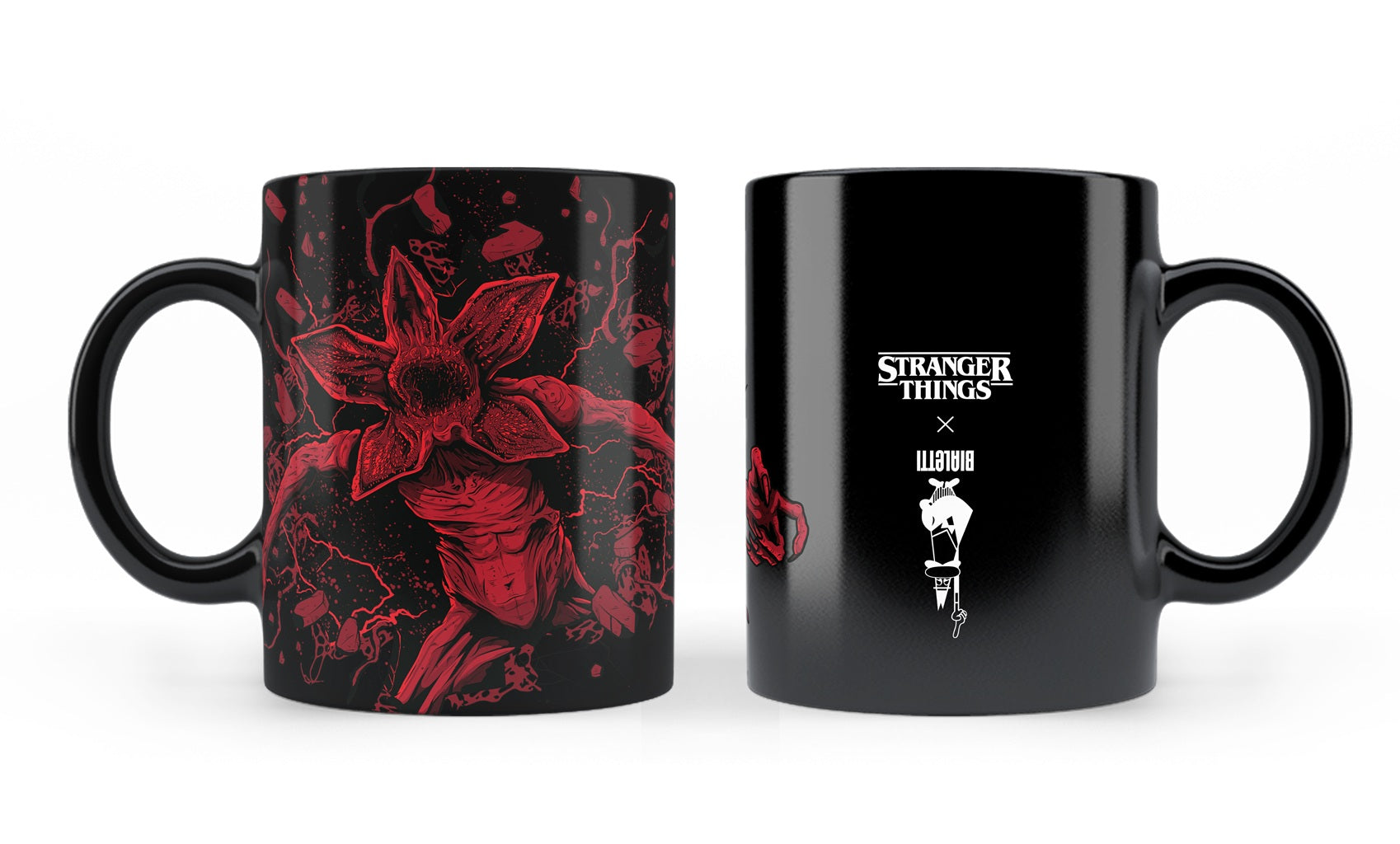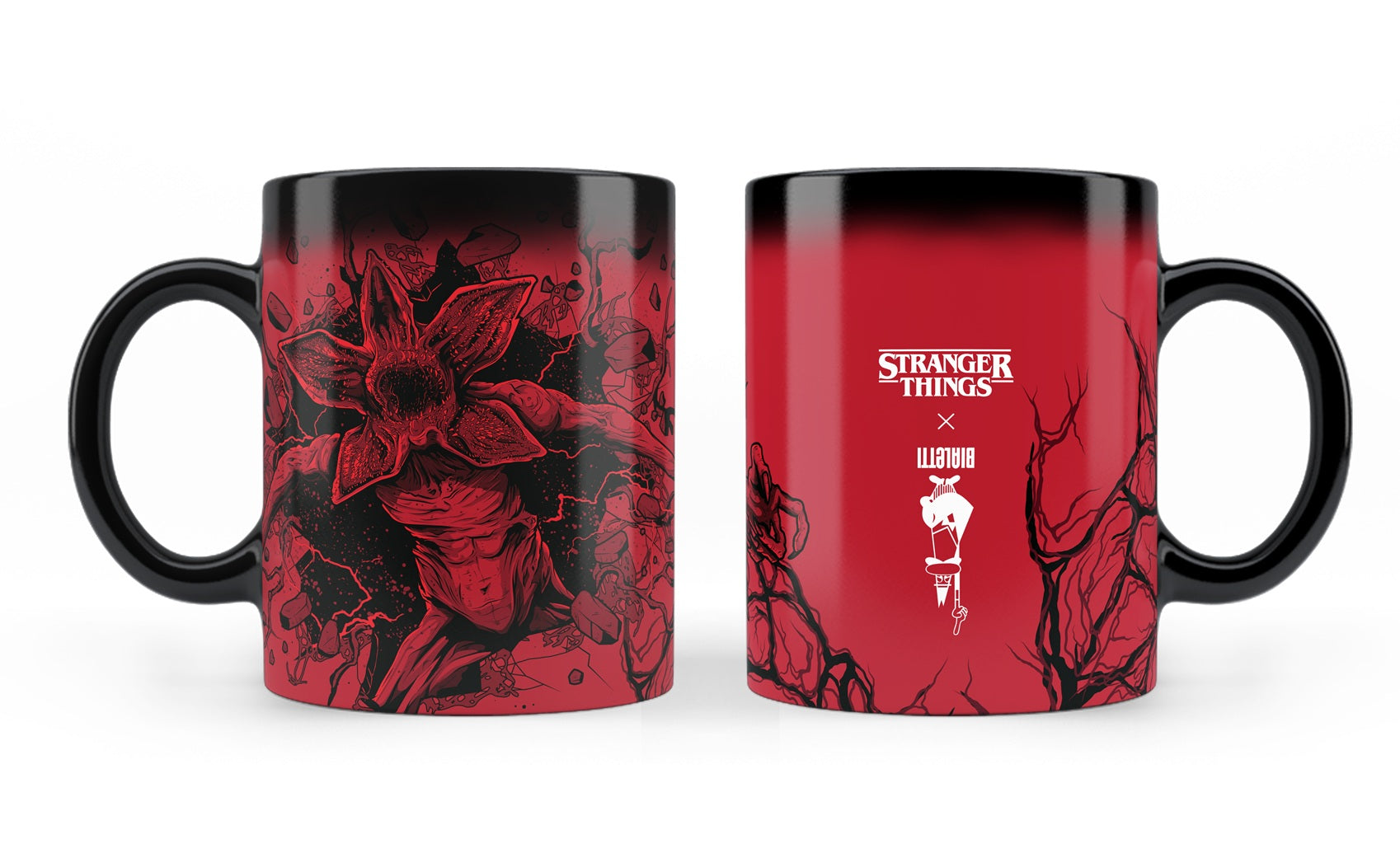 The heat-sensitive effect is truly extraordinary — the ceramic changes when in contact with heat, revealing eerie details inspired by the Upside Down.