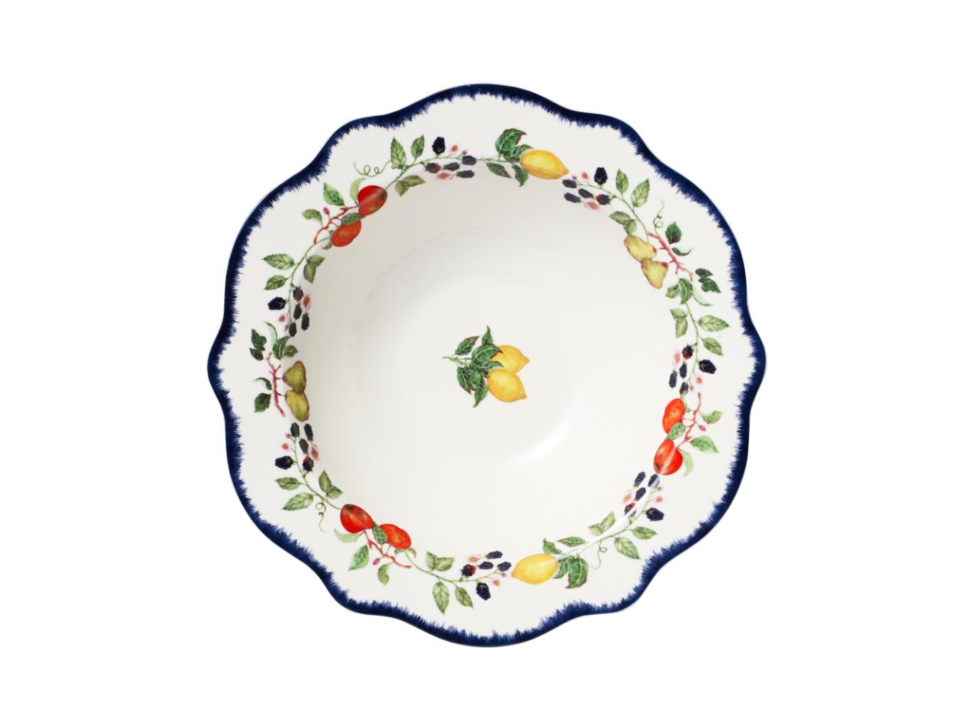 Infuse your table with Mediterranean charm using the Frutta scallop serving bowl. With its softly fluted edge and colourful fruit motif, this porcelain piece is ideal for fresh salads, pastas or shared dishes. A vibrant centrepiece made for everyday meals and casual gatherings alike.