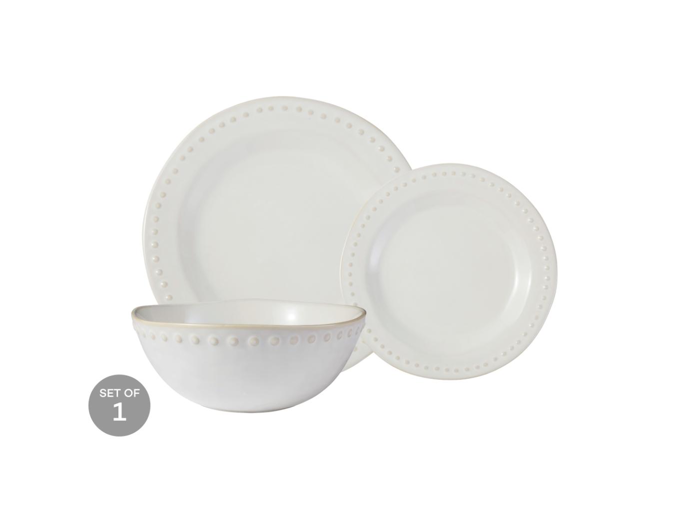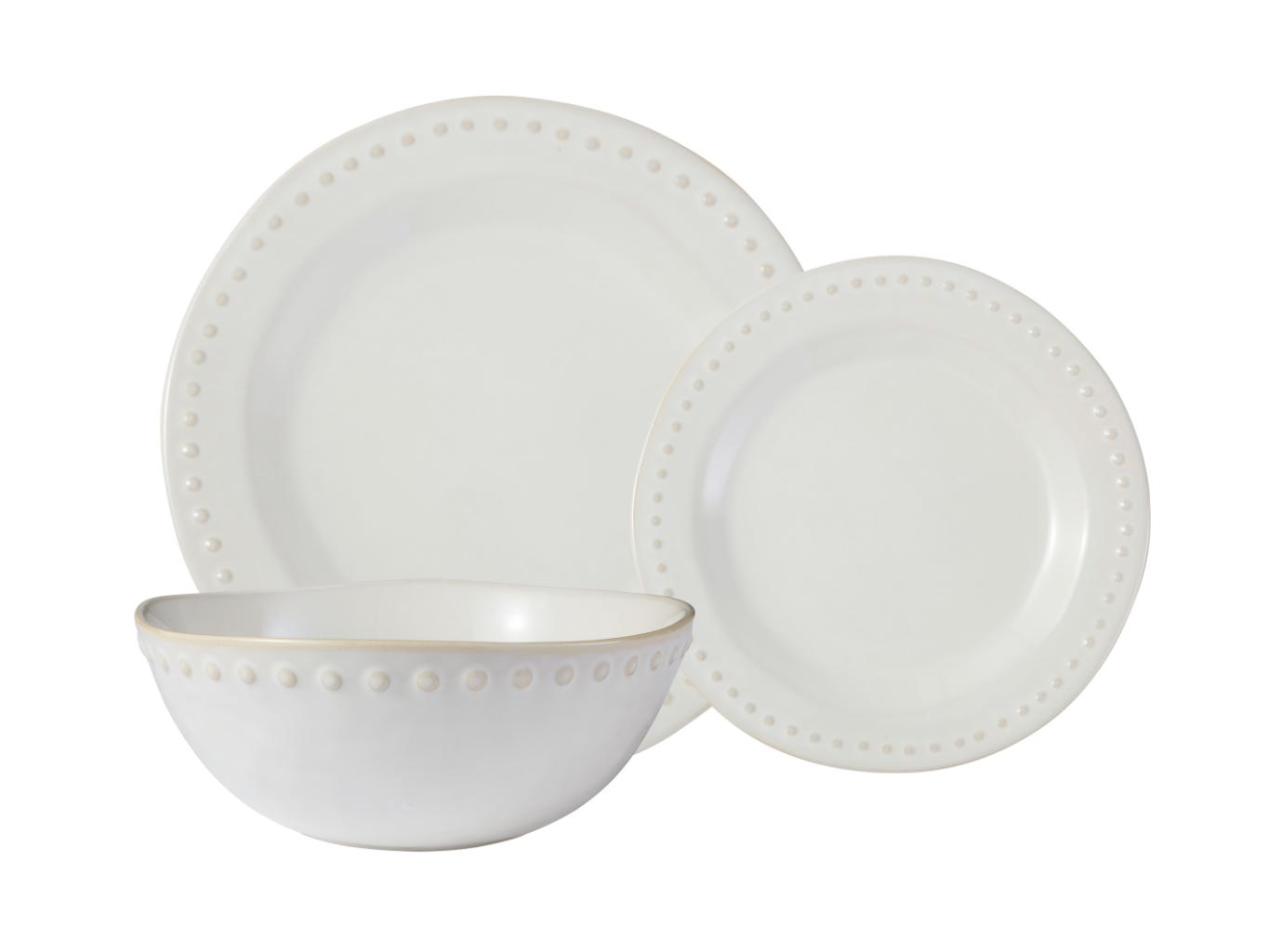 Bring effortless Mediterranean style to every meal with the Punto 12-piece dinner set. Featuring dinner plates, side plates and bowls, each piece is crafted from natural clay with a soft milky glaze and subtle embossed detailing. Perfect for everyday use or relaxed entertaining.
