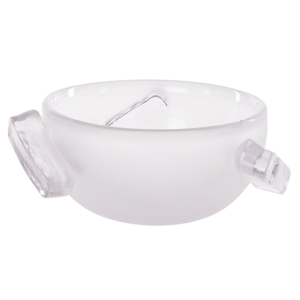 Made with frosted glass in a round slihouette, it is adorned with long transparent glass for an abstract spin.
