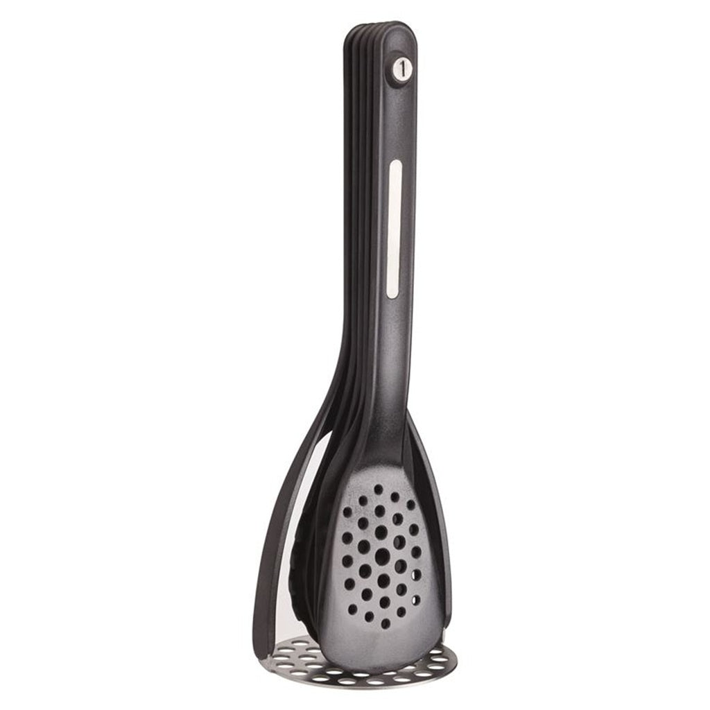 This five-piece utensil collection brings together versatile tools with a space-saving twist. Each utensil is crafted to nest within the next, allowing the set to occupy minimal cupboard or drawer space while giving you full cooking support when you need it. Finished in a sleek, modern design, the set blends seamlessly into any kitchen aesthetic.