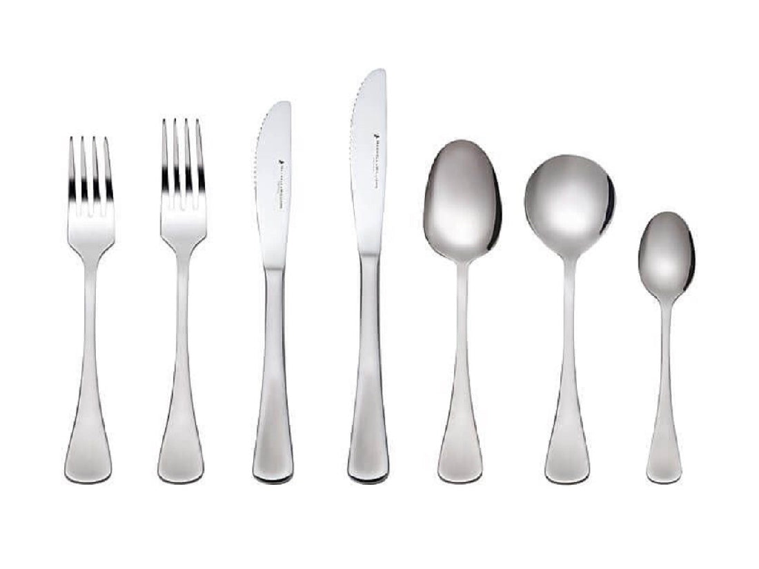Contains: 6 x entrée forks, 6 x table forks, 6 x entrée knives, 6 x table knives, 6 x dessert spoons, 6 x soup spoons and 6 x teaspoons