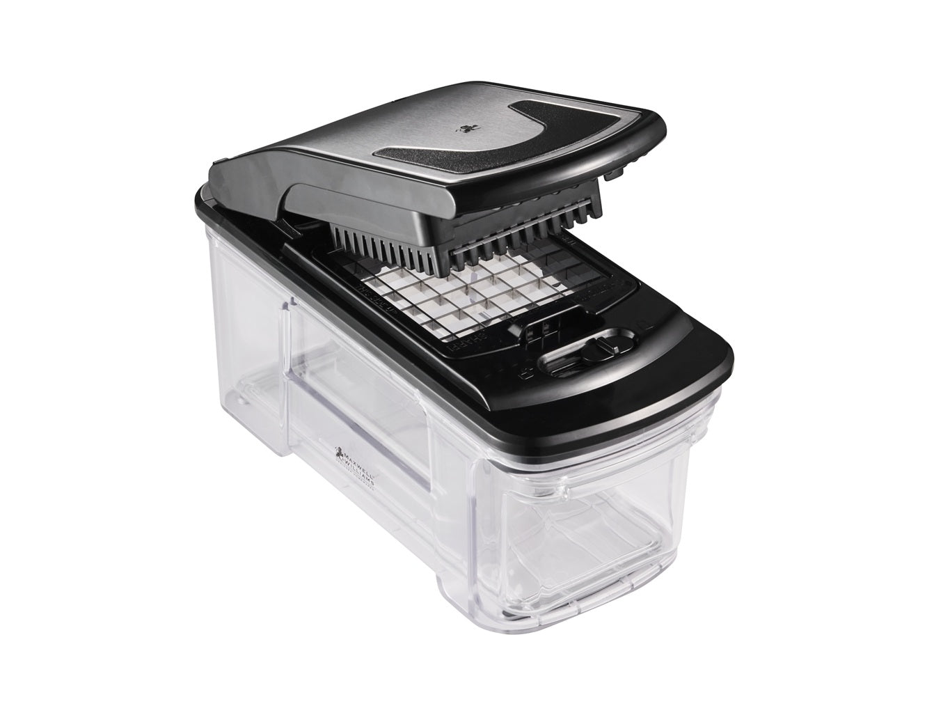 - Comes with four interchangeable blades: small dicer, large dicer, Ribbon slicer, and Spiralising julienne